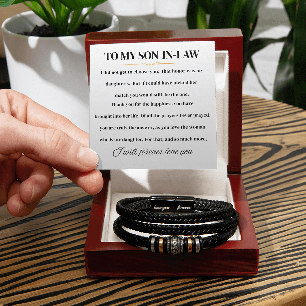 "TO MY SON-IN-LAW - I did not get to choose you; that honor was my daughter's. But if I could have picked her match, you would still be the one. Thank you for the happiness you have brought into her life. Of all the prayers I ever prayed, you are truly the answer, as you love the woman who is my daughter. For that, and so much more, I will forever love you."