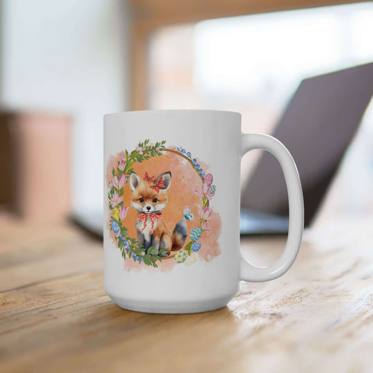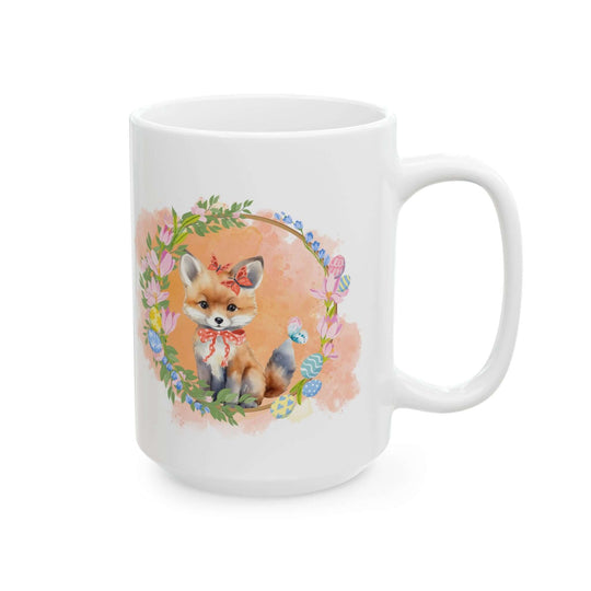 Fox Ceramic Mug - Easter Springtime Floral Wreath