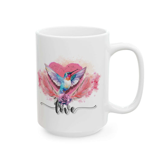 Ceramic Mug - Romantic Hummingbird Love and Flowers Mug Printify 15oz