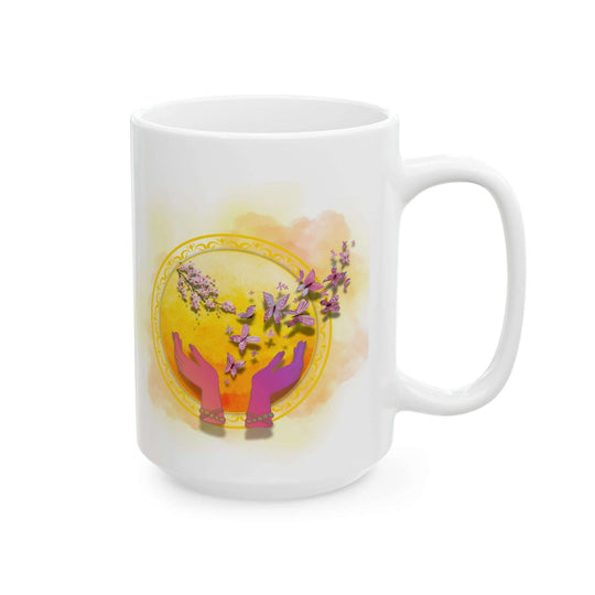 Spiritual and Symbolic hands, orb, flowers, and butterflies design ceramic mugs. Simple and Modern, these mugs give daily inspiration and access to something greater, perfect for personal moments of reflection or shared with loved ones. Suitable for spiritual people, gifters, and events like birthday, holiday, and special occasion.