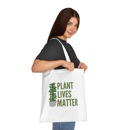 Tell it loud for the leaves in the back! This environmental-chic tote features a clean, vertical potted plant look with the eye-grabbing, bold motto "PLANT LIVES MATTER." Any plant lover, green thumb, or supporter of sustainable living will want this must-have tote!.