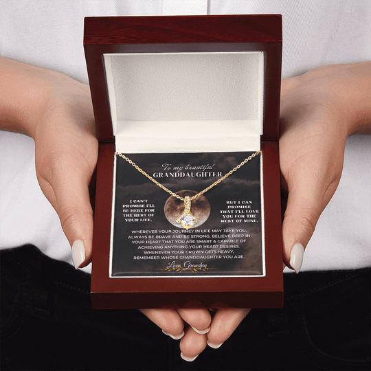 TO MY BEAUTIFUL GRANDDAUGHTER - I can't promise I'll be here for the rest of your life, but I can promise that I'll love you for the rest of mine. Wherever your journey in life may take you, always be brave and be strong. Believe deep in your heart that you are smart and capable of achieving anything your heart desires. Whenever your crown gets heavy, remember whose Granddaughter you are. LOVEGRANDPA