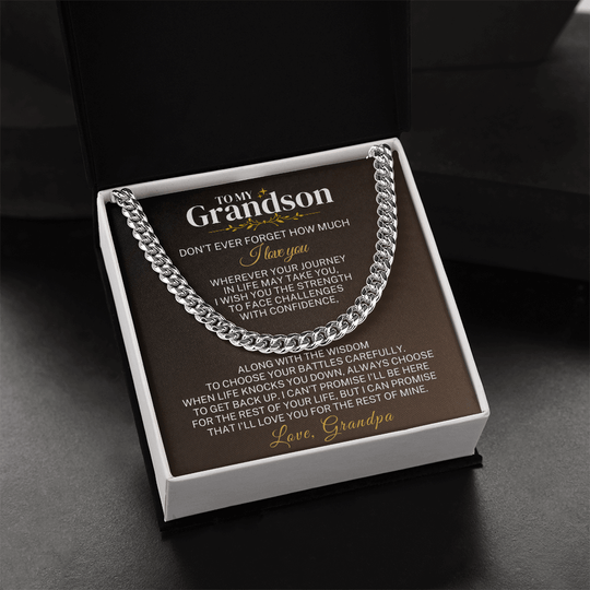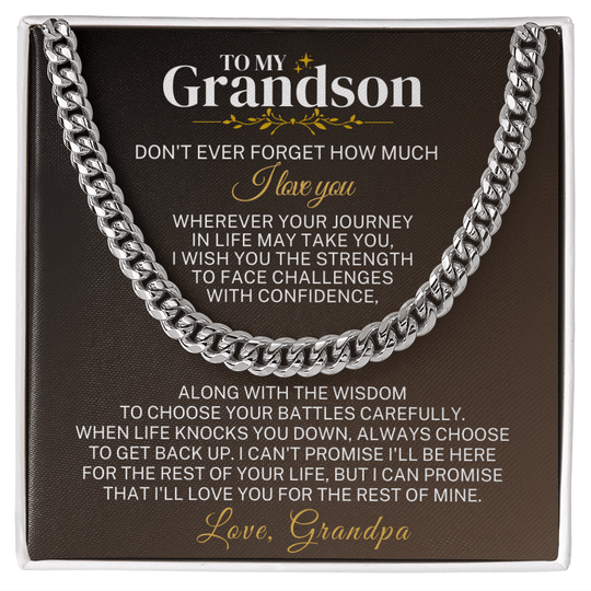 • Exclusive Message Card "TO MY (*Our) GRANDSON - Don't ever forget how much I (*we) love you. Wherever your journey in life may take you, I (*we) wish you the strength to face challenges with confidence, along with the wisdom to choose your battles carefully. When life knocks you down, always choose to get back up. I (*we) can't promise I'll (*we'll) be here for the rest of your life, but I can promise that I'll (*we'll) love you for the rest of mine.