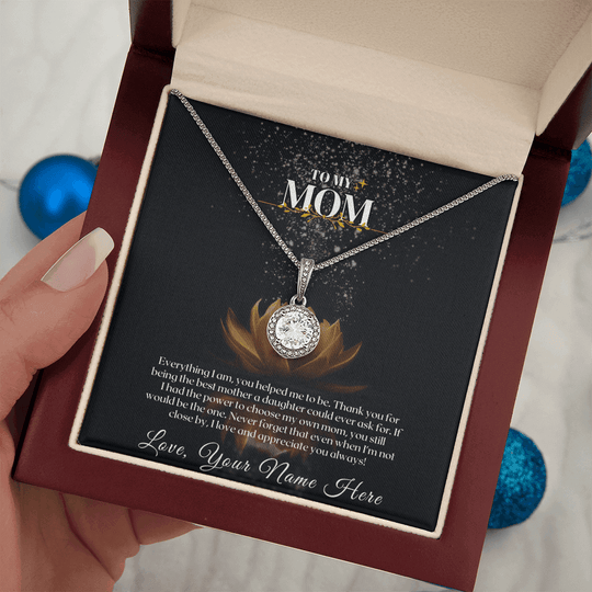 Everything I am, you helped me to be. Thank you for being the best mother a daughter could ever ask for. If I had the power to choose my own mom, you still would be the one. Never forget that even when I’m not close by, I love and appreciate you always! YOUR-OWN-SIGN-OFF"