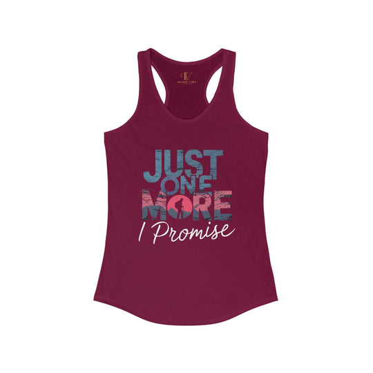 Pump up and feel great about it with this lightweight, breathable tank! With the motivational phrase "Just One More, I Promise", and a tiny runner design, this graphic is perfect for workout sessions at the gym, running, and an active lifestyle. Whether you're pushing through for one more rep, one more mile, or one more success, this stretchy, comfortable tank will get you going.