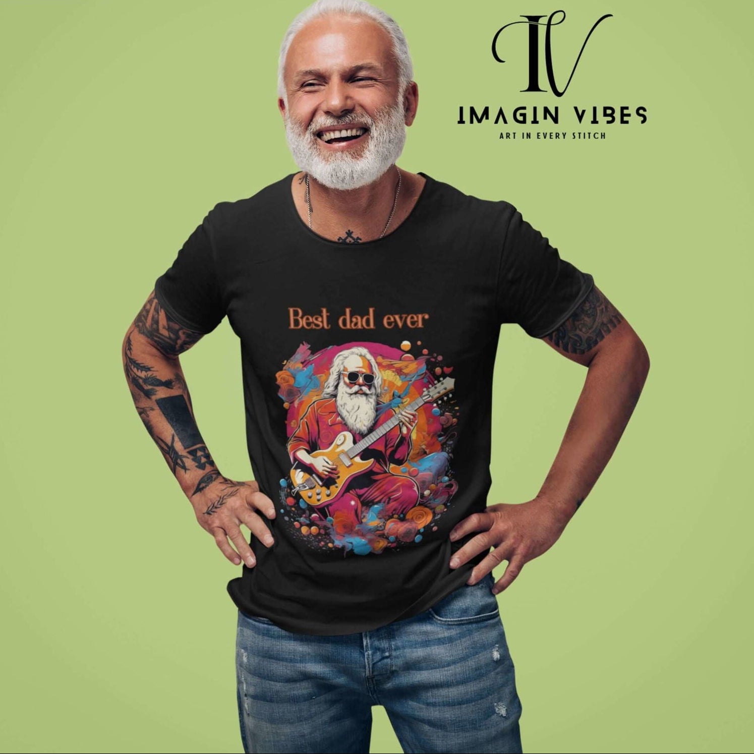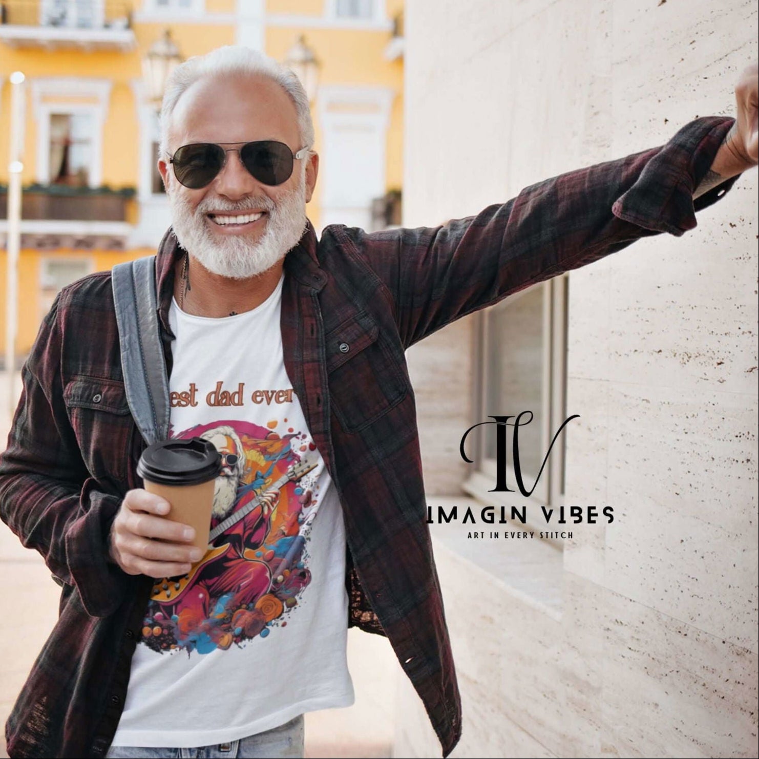 This vintage-inspired guitar dad tee channels laid-back summer nights and well-worn riffs. A soft, lightweight jersey sits close to the body without feeling heavy, so it moves with you from backyard barbecues to open-mic nights. The faded, hippie-style “Best Dad Ever” and guitar motif reads like a memory — sun on the amp, a kid learning chords on the porch. It’s the kind of shirt a father reaches for when he wants to feel seen: comfortable, a little nostalgic, and ready for conversation. Wear it with worn denim, a flannel tied at the waist, or under a denim jacket for evenings at the campfire or family gatherings where stories (and songs) get passed around.