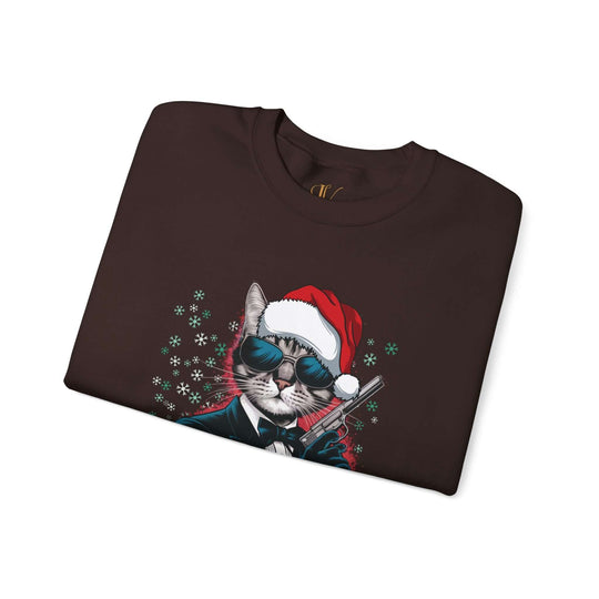 Funny Cat Merry Kiss My Ass Unisex Sweatshirt Sweatshirt Printify S Dark Chocolate