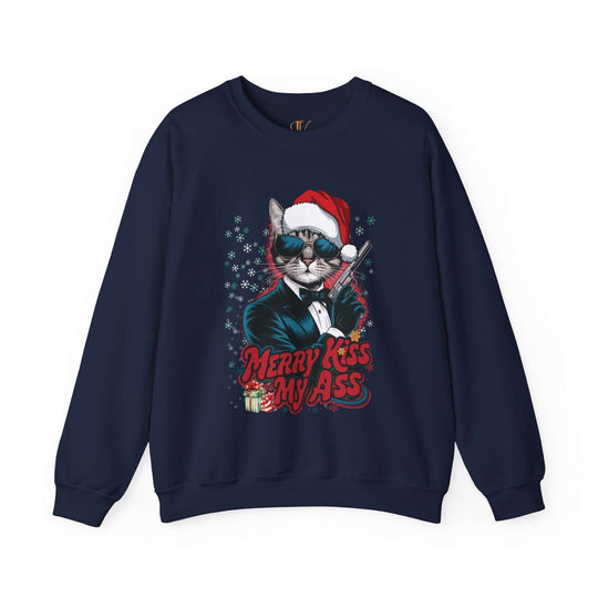 Funny Cat Merry Kiss My Ass Unisex Sweatshirt Sweatshirt Printify S Navy