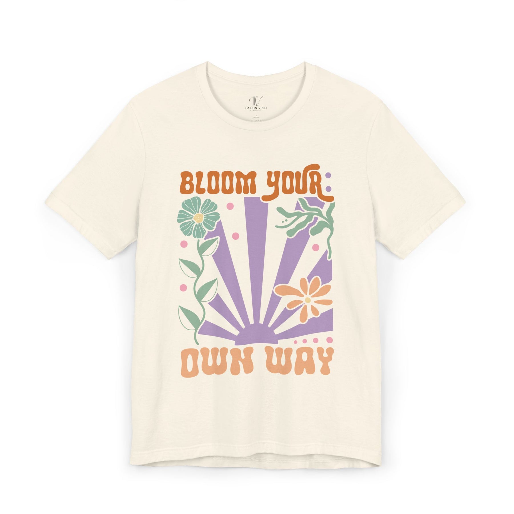 Retro Groovy Unisex Tee | 'BLOOM YOUR OWN WAY' Vintage Sunburst Flower Shirt T-Shirt Printify Natural XS